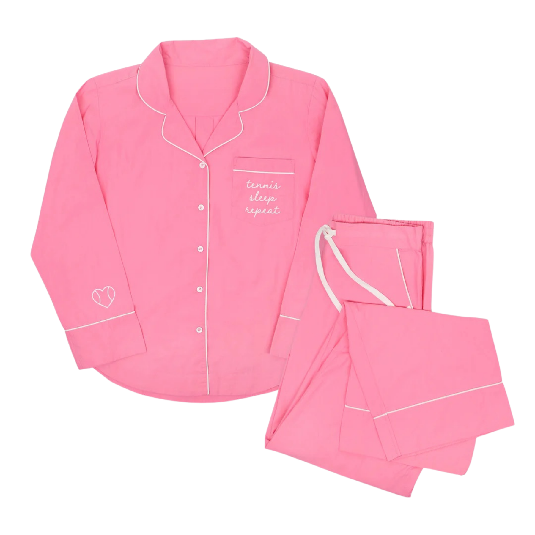 Unwind in style after a day on the tennis court, golf course, or pickleball court. Our Long Pajama Set pairs a classic button-down top with relaxed pants in soft, breathable fabric—made for comfort that feels as good as it looks.